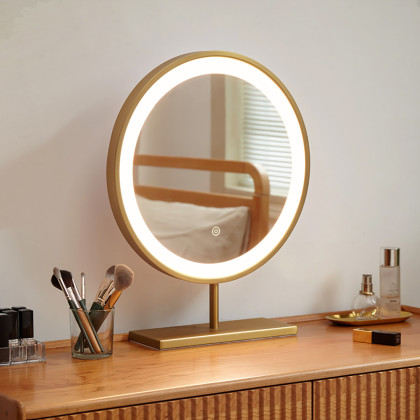 轻奢化妆镜台式桌面家用梳妆镜圆形美妆镜LED带灯Y00D64