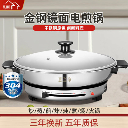 电煎锅家用烙饼加深加大304不锈钢无涂层单镜面电饼铛